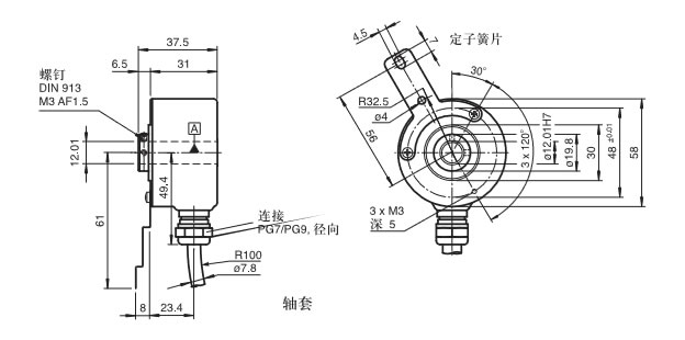 外形尺寸:空心轴;38mm