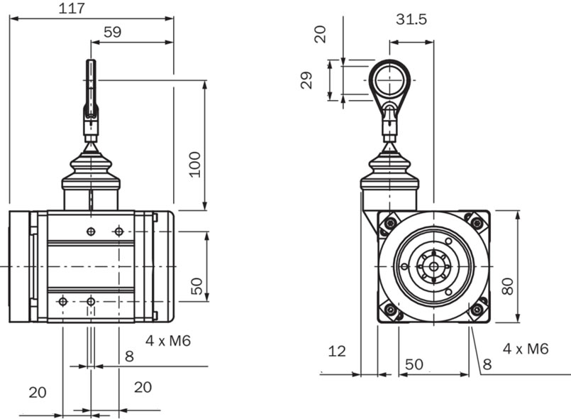 • Description: Pull-wire encoder for servo flange with 6 mm shaft, measuring range 0 m ... 3 m